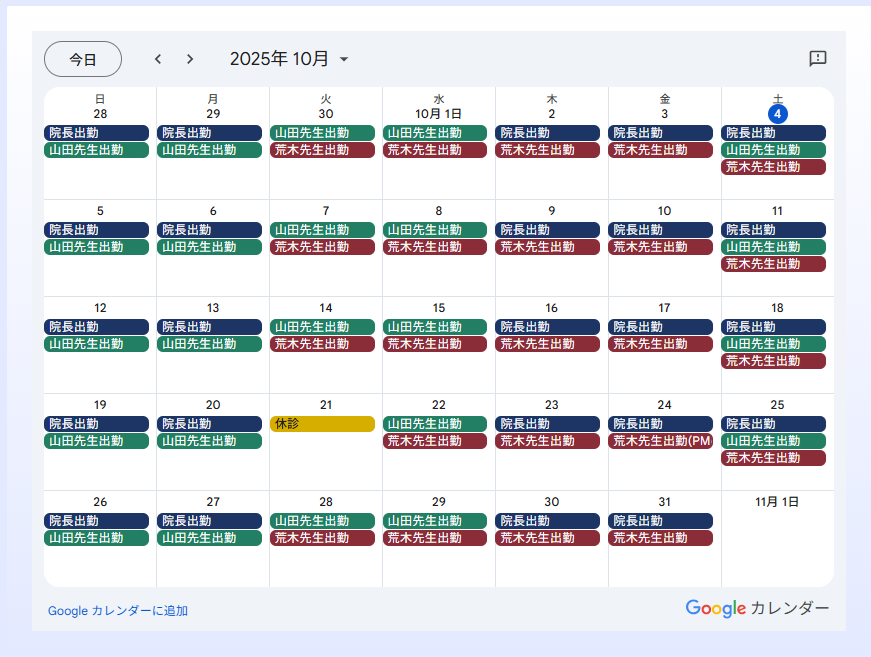 担当医カレンダーがうまく表示出来ない方はこちらをクリック(10月)