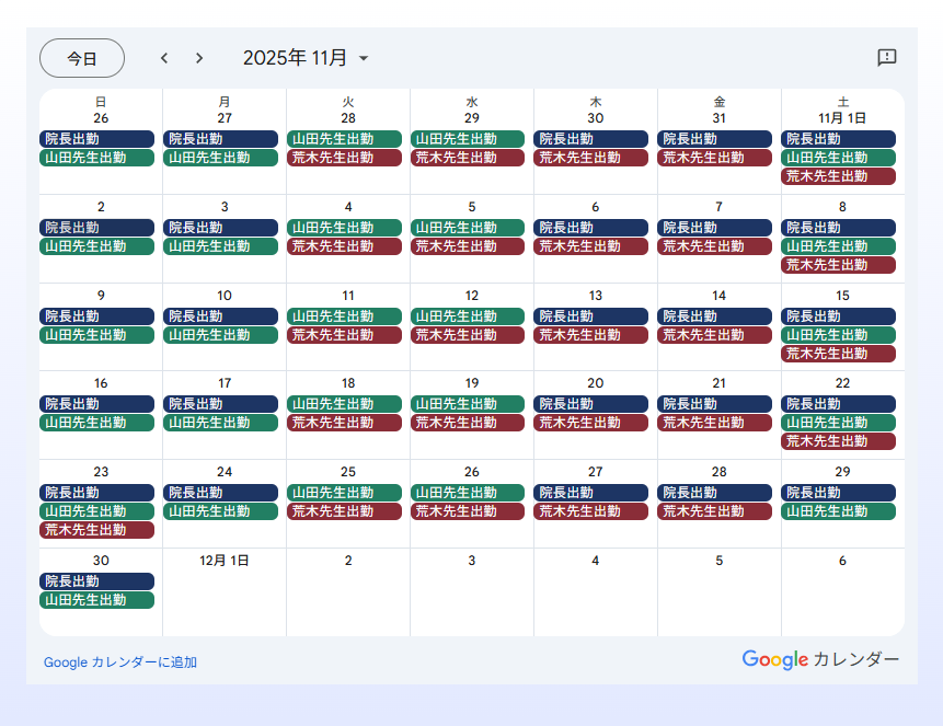 担当医カレンダーがうまく表示出来ない方はこちらをクリック(11月)