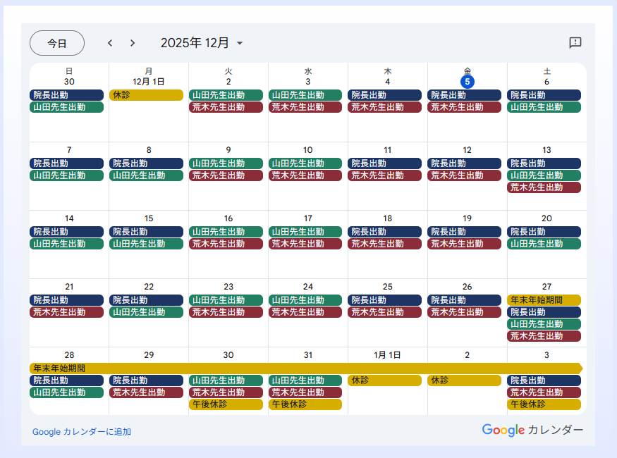 担当医カレンダーがうまく表示出来ない方はこちらをクリック(12月)